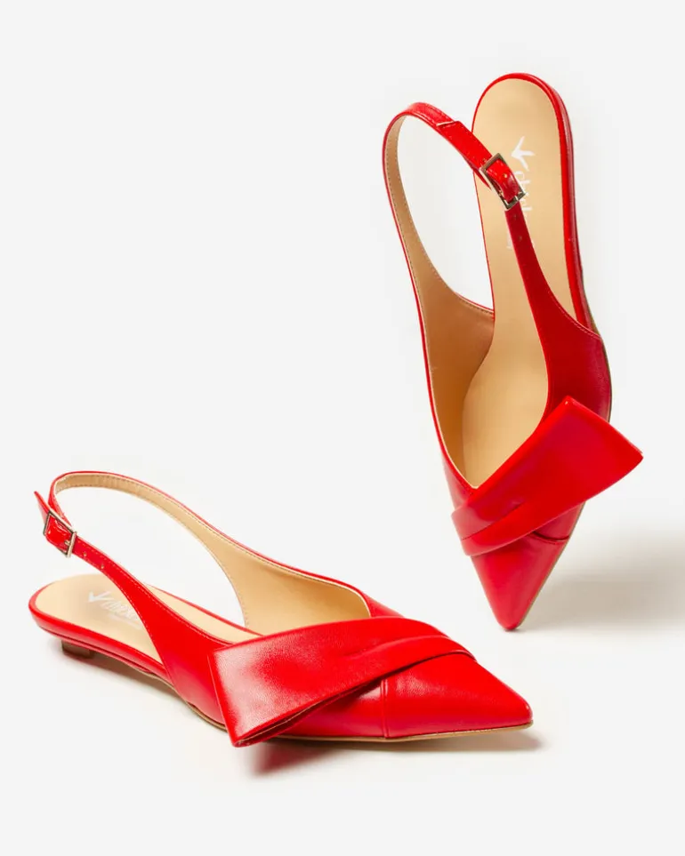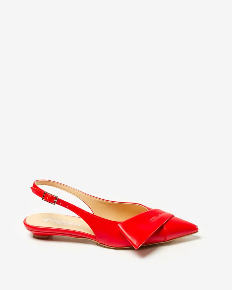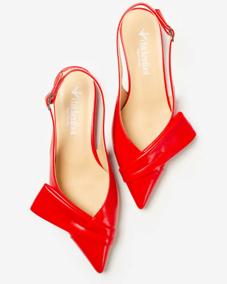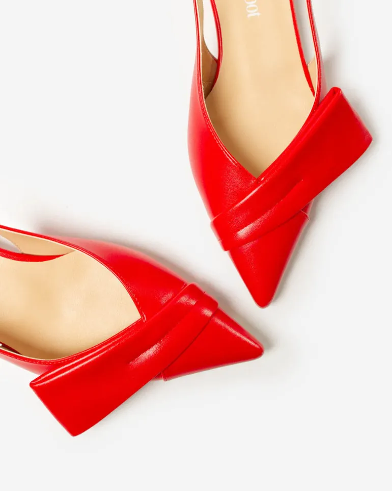 Slingback in similpelle realizzata in Italia a punta con cinturino elasticizzato e dettaglio asimmetrico sullo scollo.