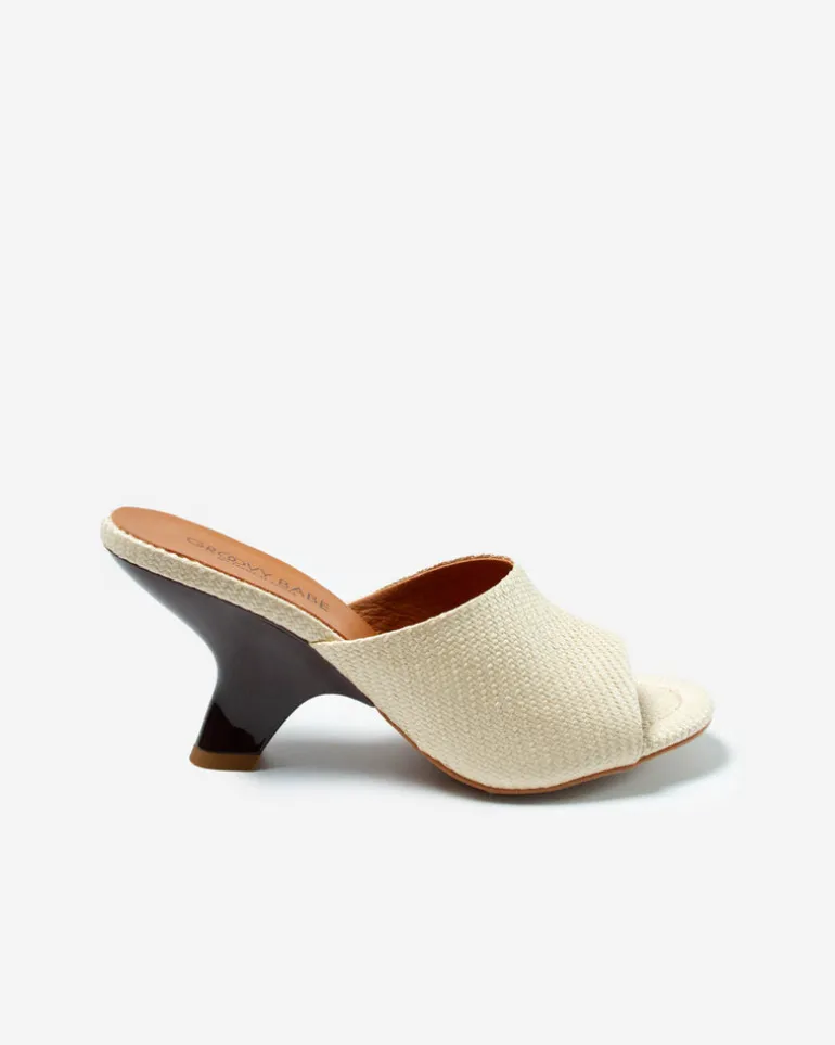Sandalo sabot in pelle con tacco curvo in simil legno. Una scarpa semplice e di design adatta a dare un tocco in più ad ogni tuo look estivo.