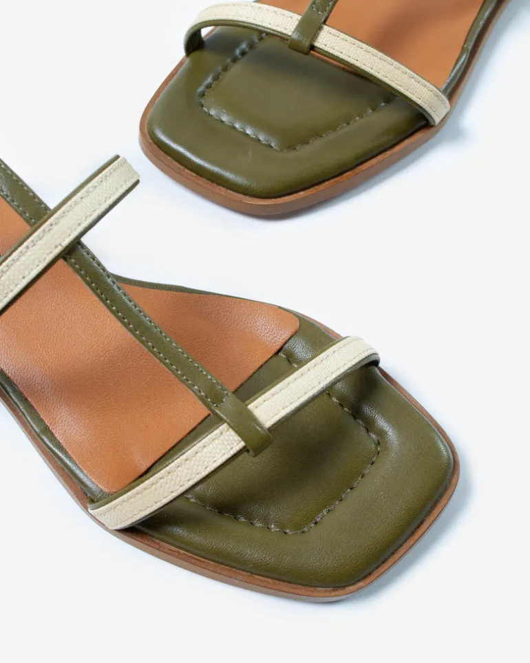 Sandalo basso vera pelle color khaki, inserti in tessuto e cinturino regolabile. Una scarpa semplice e raffinata che dona un tocco chic ad ogni tuo look.