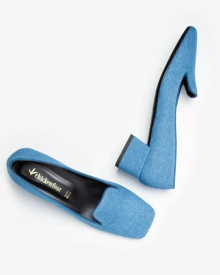 Le Chickenfoot Belga Denim sono mocassini da donna con tacco foderati in tessuto di jeans, presentano un sottopiede in vera pelle ed una suola in gomma.